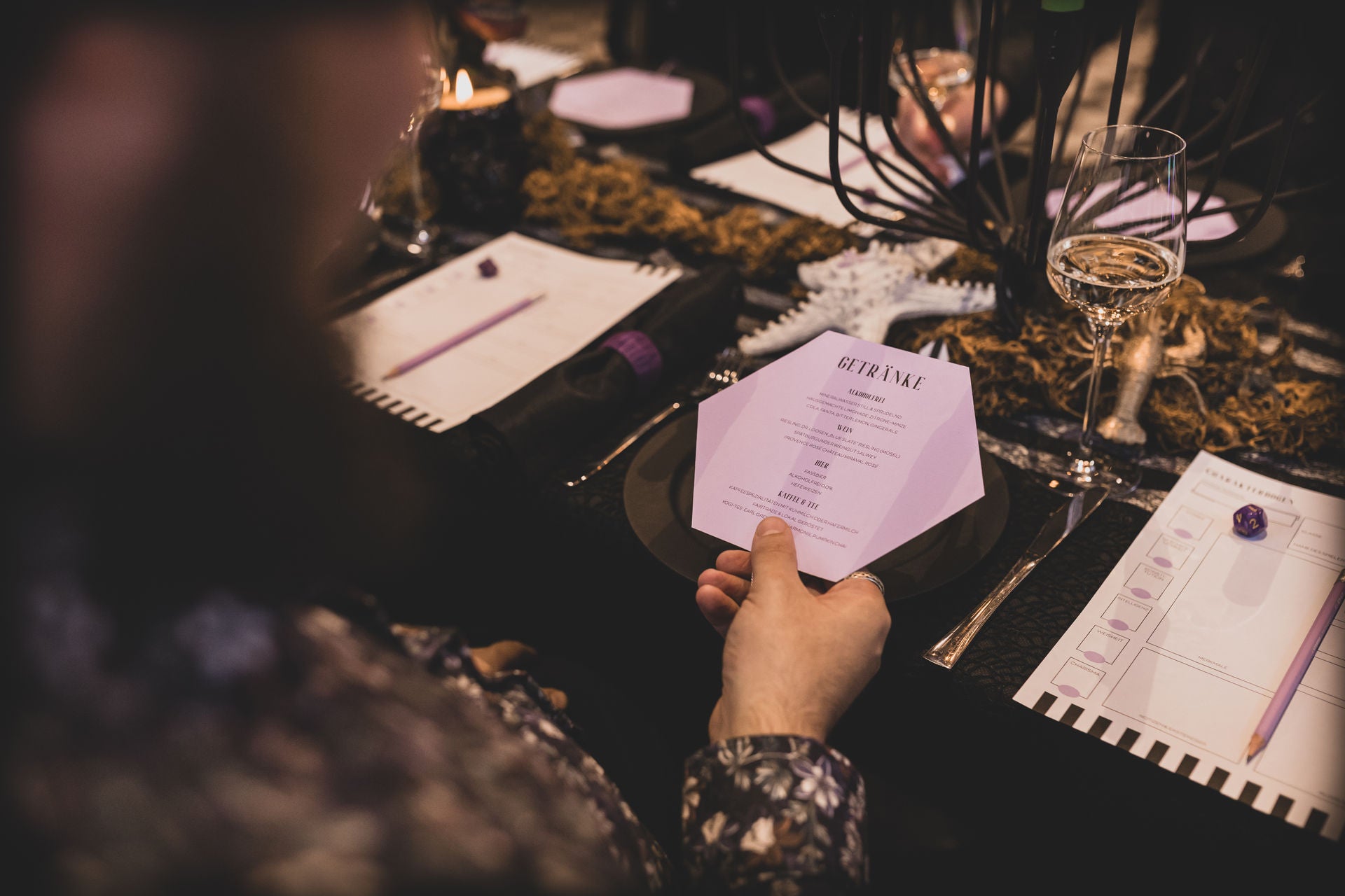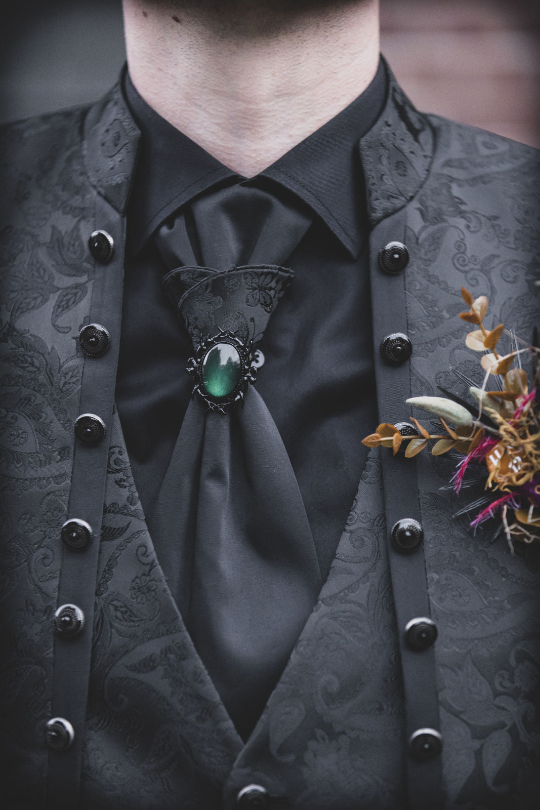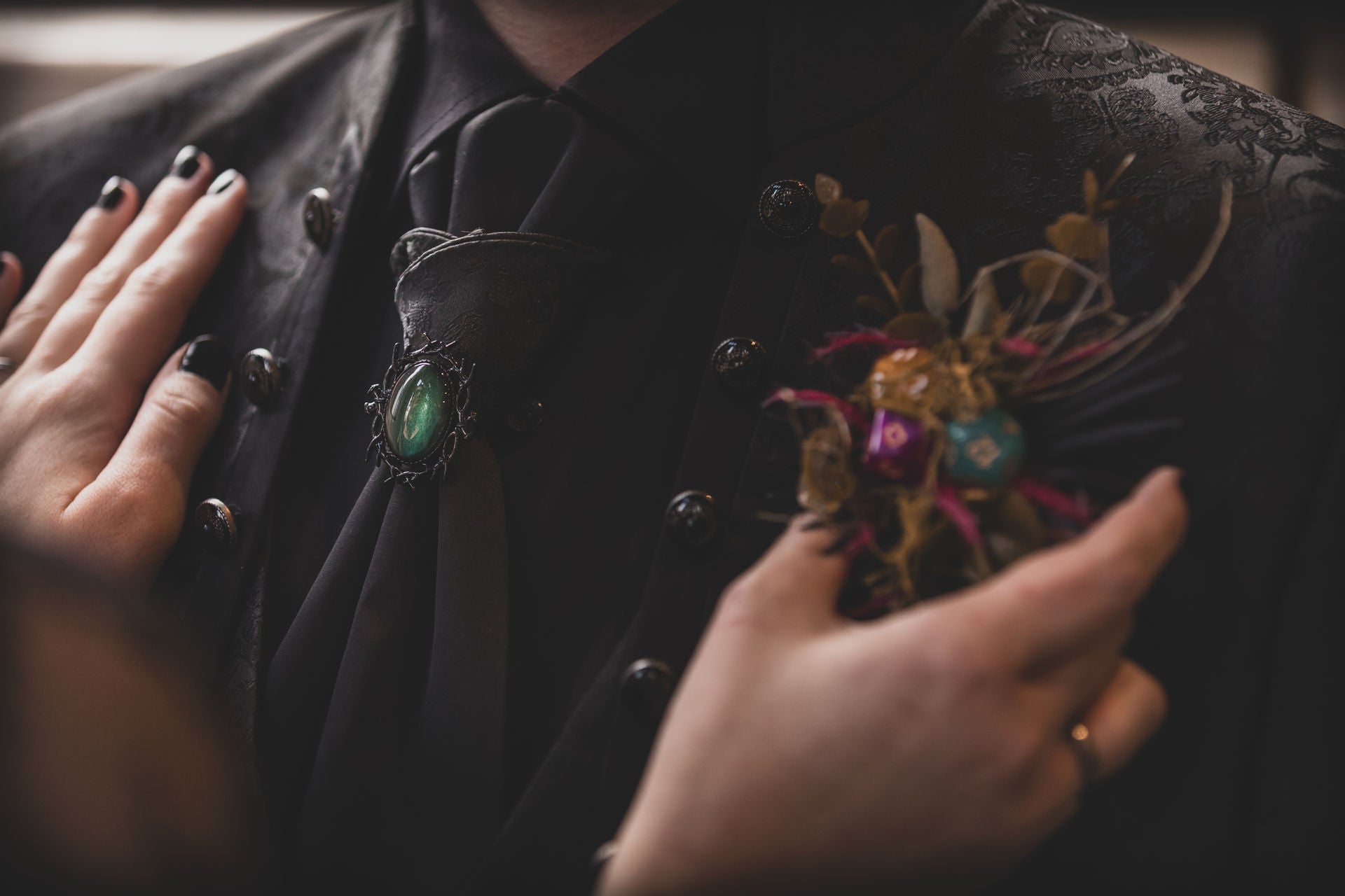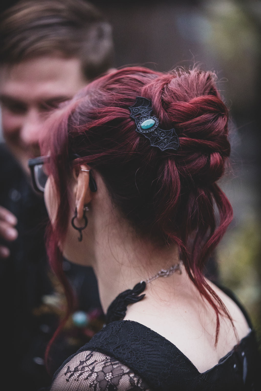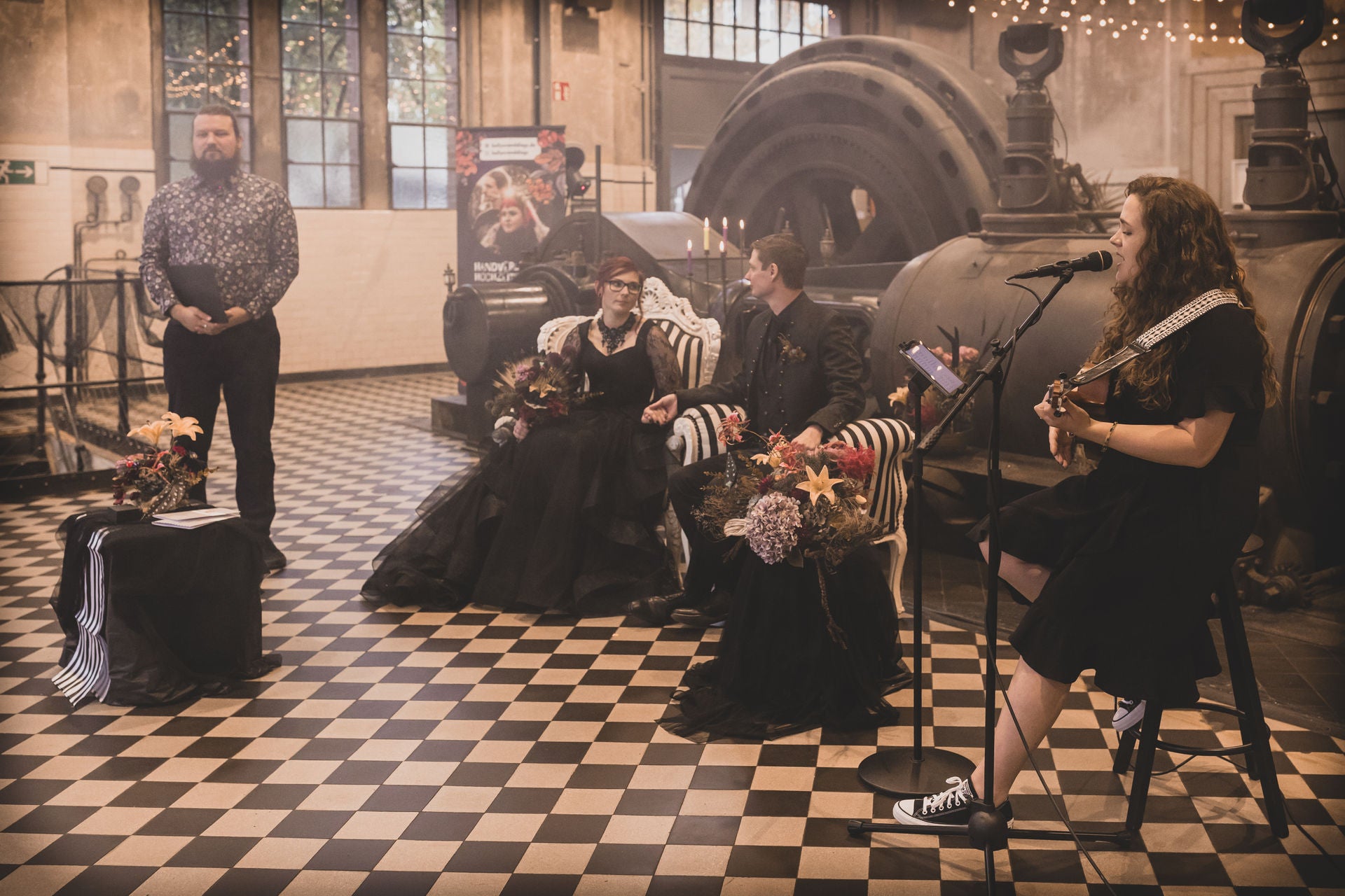 Die Alte Maschinenhalle bildete die perfekte Kulisse: edel, verspielt & voller Atmosphäre. Zwischen dunklen Stoffen, floraler Opulenz und Kerzenschein kam unser handgefertigter Gothic Schmuck besonders schön zur Geltung.