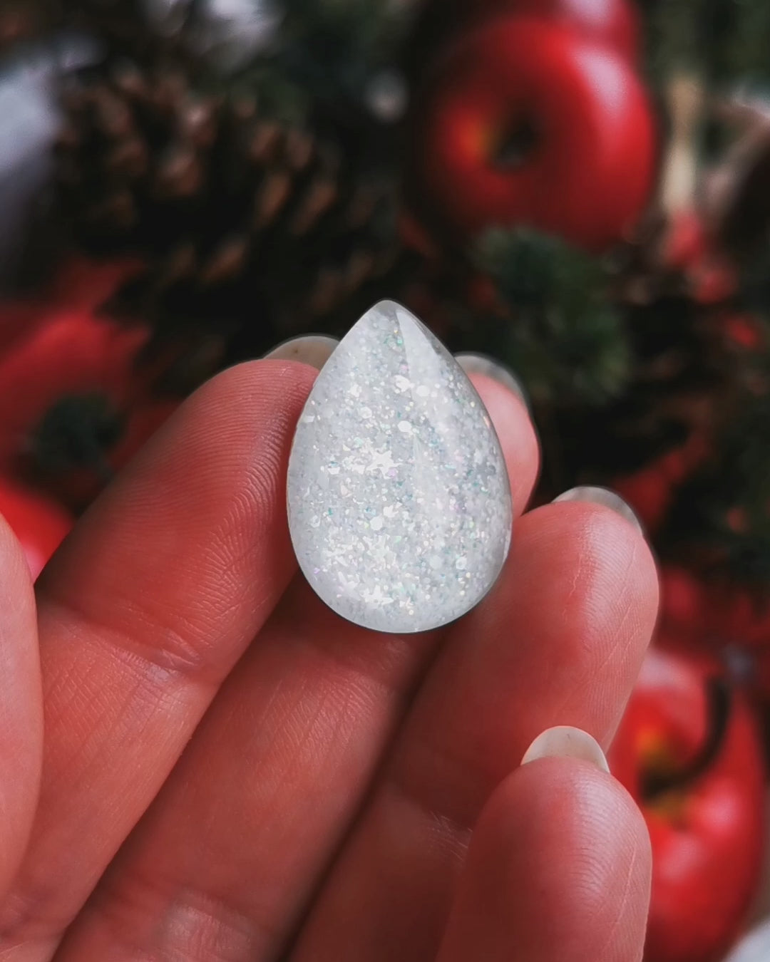 Weißer Schnee, kleine Sterne, holo vibes – wie ein Hauch aus einem frostigen Fantasy-Reich.